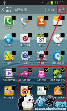 将需要隐藏的应用程序进行勾选,然后点击屏幕右上角的【完成】。