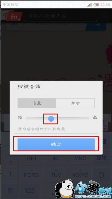 3、进入按键音效后我们可以看到这里可以设置按键音量,只要拖动滑块就可以控制按键音效的大小,值得注意的是:我们的手机现在基本都是智能机,所以耗电量比较大。按键声音的声音越大就会越耗电,所以大家的按键声音设置大小适中就行