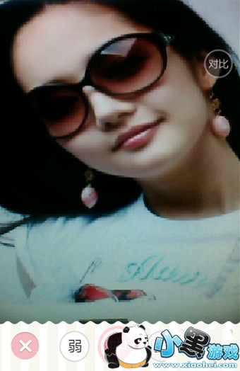 2、拍照完成后,会自动对照片进行美化,选择有三种美化方式“弱”、“中”和“强”,最后点击“勾号”完成美化