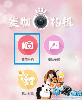 1、首先我们下载一个美咖相机,运行“美咖相机”程序,在其主界面中,点击“美丽自拍”按钮,就可以实现对自拍照片的美化处理操作