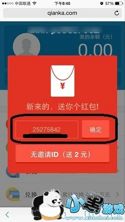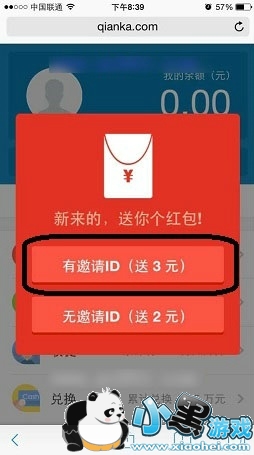 第五步:刚用钱咖的新用户会有红包领取,页面会弹出红包领取页面,用户点击“有邀请ID送3元”即可
