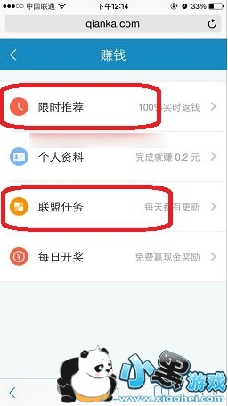 第七步:好了,到了真正赚钱的方法步骤了!先点击“赚钱”,然后点击“显示推荐”,下载钻钱app软件,用户也可点击“联盟任务”,下载软件赚积分换钱,200积分=1元。(返完钱后大家就可以把钱咖这个软件删掉了,虽说有点不仁义,不过钱已经到手了,呵呵!)