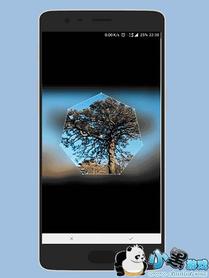 当裁剪形状切换到三边形时,点击图片中间的圆点即可把图片切换为3—10边的多边形。