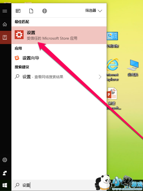 1、我们打开电脑,在桌面的开始搜索框内输入设置,点击设置按钮。