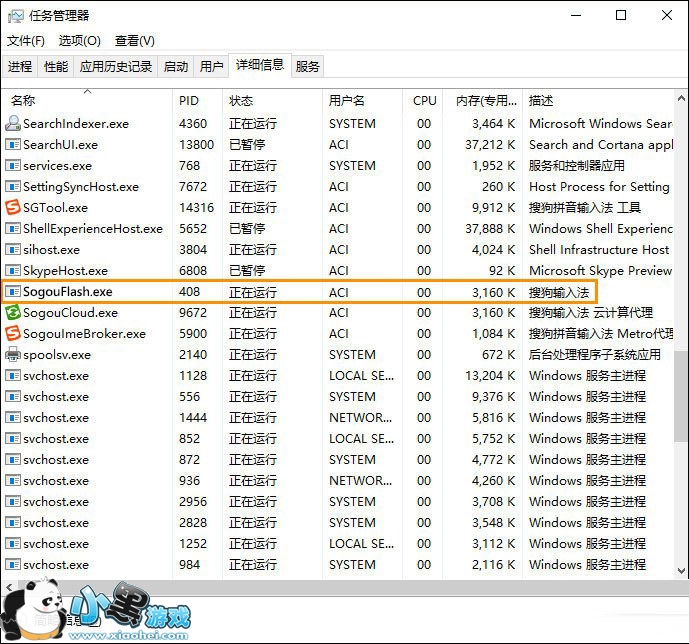 1、按下“Ctrl + Shift + Esc”快捷键打开任务管理器,在“进程”选项卡中找到“SogouFlash.exe*32”;