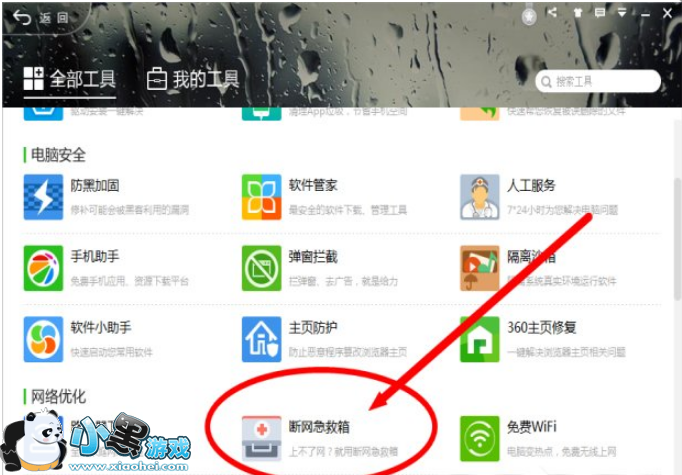 1、打开360软件的工具箱在网络优化里有个断网急救箱,打开断网急救箱。