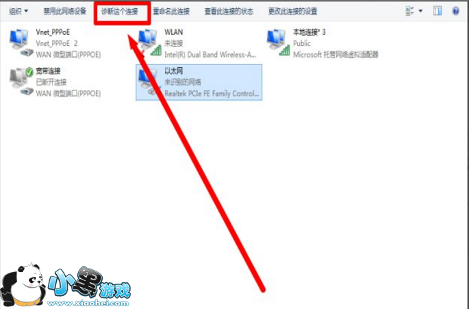 1、使用电脑自带的网络诊断来诊断一下宽带连接和以太网连接。