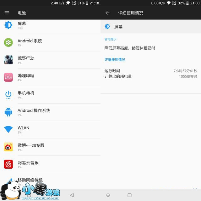 上述测试均在WiFi网络环境下进行,总共包括8小时的亮屏和1小时的音乐后台播放。剩余电量为32%,也就是说在不怎么玩游戏的中轻度使用条件下,一加5T的亮屏时间达到10小时的问题不大。