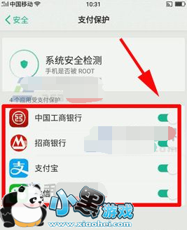 2、最后选择下面要开启支付保护的应用点击旁边的【开关】就可以了。