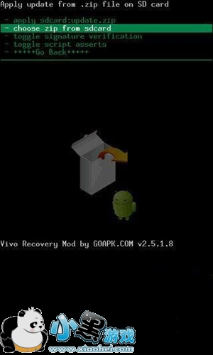 3、Flash zip from sdcard --从sd卡根目录的.zip ROM 刷机包刷机,这项算是常见的了,现在的新版本的recovery,一般都不需要把刷机包重命名为UPDATE.ZIP了,可以直接刷机。