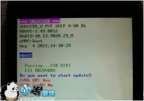 在root之前先查看机器的安全锁状态,关机,按住音量减,再同时按住开关键,进入手机HBOOT界面,如果第一行之中是S-ON则表示需要解锁,S-OFF则表示已解锁,已解锁的用户可以直接跳过第一步解锁步骤。