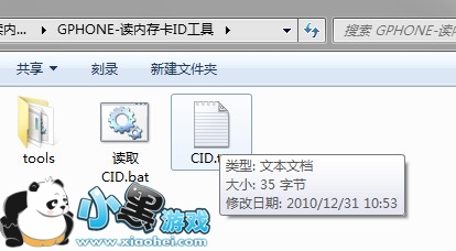 4、下载GPHONE-读内存卡ID工具,运行读取CID.bat,操作成功的话,目录下会有个CID.txt,打开CID.txt您就可以看到您的micro SD卡的ID号。