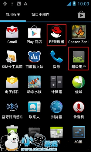 手机重启后就能看到已经成功ROOT,打开手机的主菜单就能看到多了一个“RE管理器”和“超级用户”