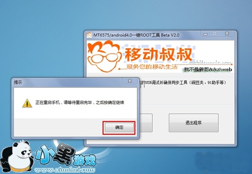 这时候手机会再一次重启,并且软件提示ROOT成功,这时候就可以关闭软件了。