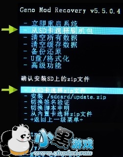 2.选择“从SD中的ZIP刷机包”---“从SD卡选择ZIP刷机包”---“xx .zip”--“是的,安装 xx .zip”,按电源键确认,手机开始自动刷机,等到显示“从SD卡安装完成”后,返回上一页,选“重启系统”。ok了