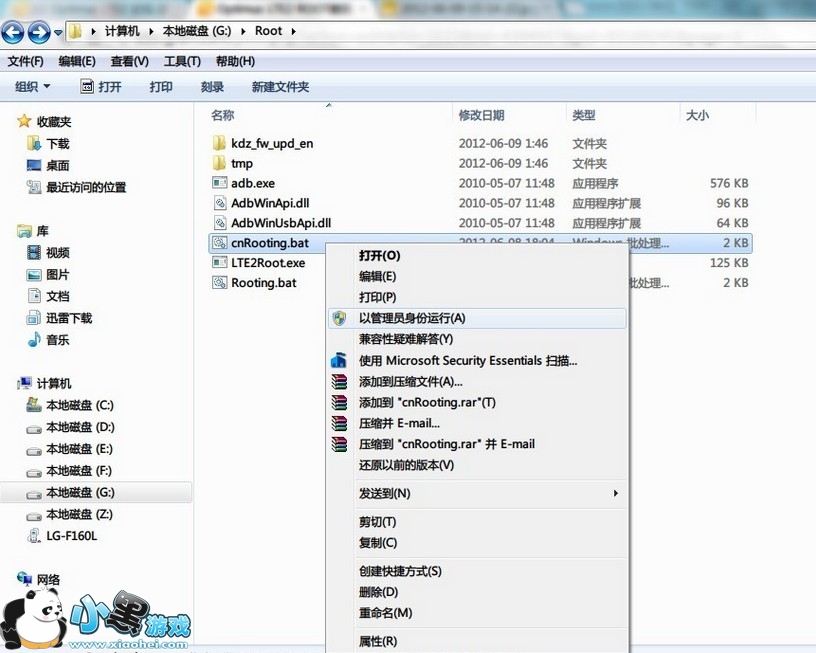 4.连接USB, 并运行附件中的 Rooting.bat.(win7用户务必右键管理员运行!)