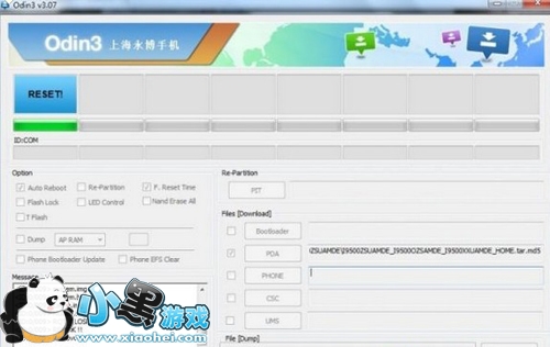 2)运行Odin3_v3.07.exe刷机平台