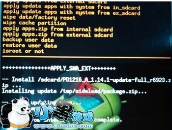 5. 按音量 - 选择apply update apps with system from in_sdcard,再点击锁屏键进入选择菜单如图所示