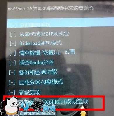 5:然后按音量键选择【获取root/关闭Root权限】这一项即可对手机进行root了