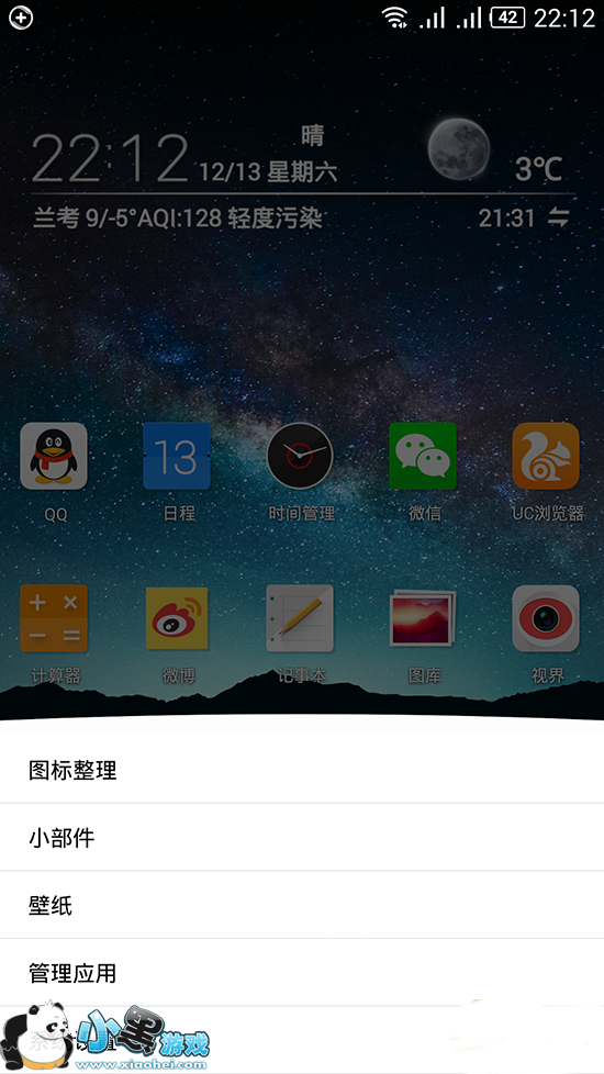点菜单键或者桌面设置图标进入系统设置,如图: