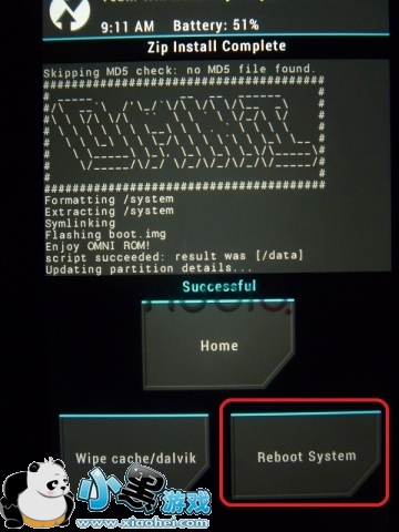 这样就完成刷机了,我们点击"Reboot System"重启!