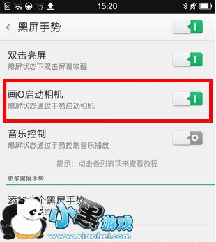 5.黑屏手势打开相机(设置——手势体感——黑屏手势——画O启动相机)