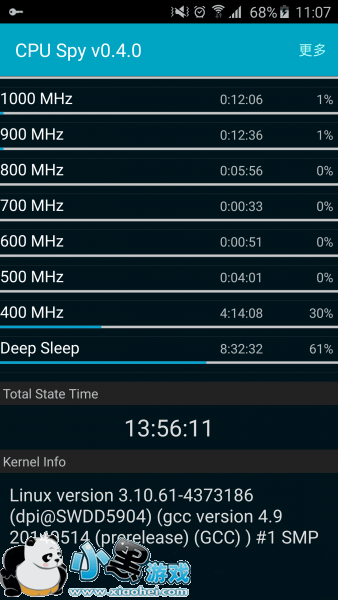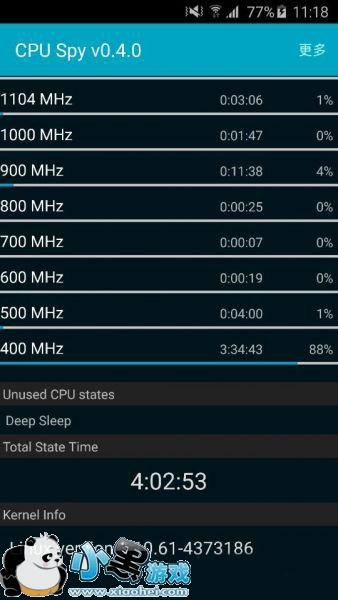 提醒一下,Root以后会没有休眠(deep sleep)状态,待机不行在所难免,这个问题已经被证实可以证实可以解决,下图是cpu spy软件截图,同学们可以验证下。