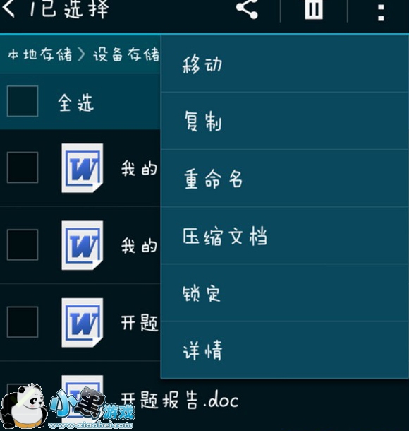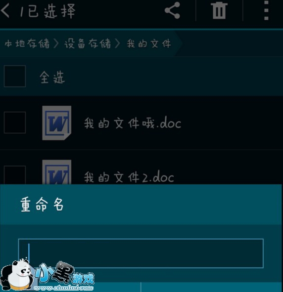 4、随便找一个文件,将文件重命名,重命名都会把,手机右上角选项里有