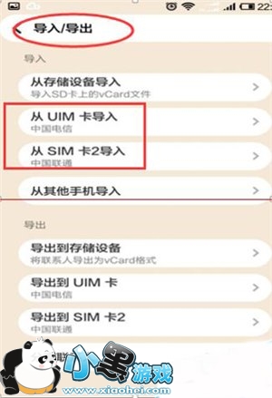 5、不论步骤3还是步骤4,都可以找到”从SIM1或2卡“导入的字眼,单击