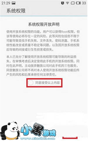 4、进入之后勾选上【同意接受以上内容】,然后点击【确定】即可开启Root权限。