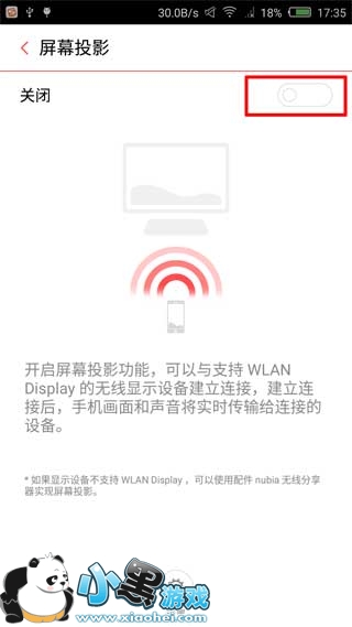 第三步:打开“屏幕投影”,如上图。我们把“屏幕投影”打开,手机就进入搜索了,只要你的电视器有WIFI功能,已经打开WIFI,手机可以搜索连接上。