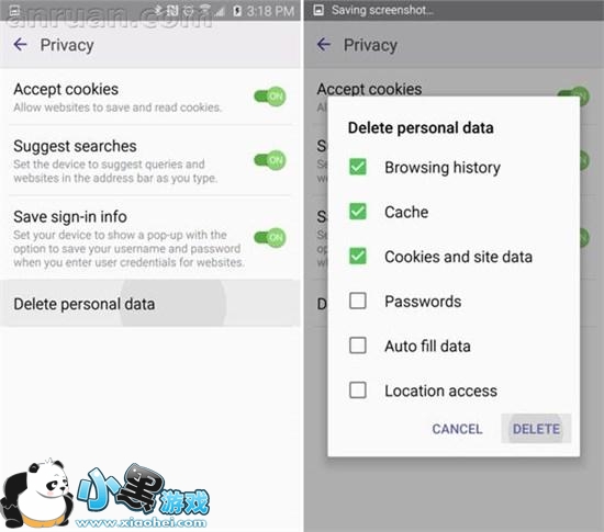当你进入隐私的设置菜单时,你可以看到设备为你提供了几个选项。一个很常用的选项是是否记住表单数据 ,如用户的登录信息和密码。很多人都喜欢使用这个选择,保存登录信息,这样可以更方便在自己手机登陆各种网站,而不要每次都输入繁琐的密码和用户名。但是使用这个选项记住要设置一个适当的锁屏安全措施,毕竟这样具备了隐私泄露的危险性,所以请谨慎使用。