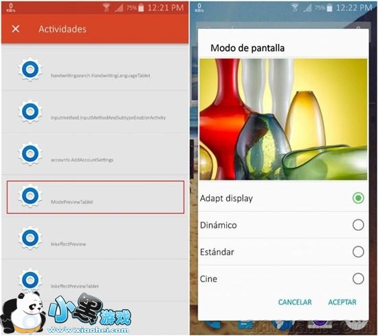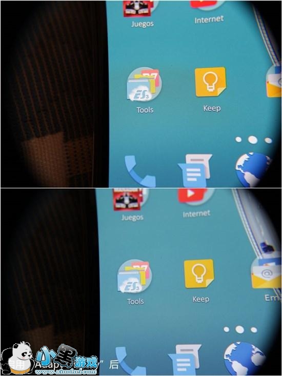 从对比图中可以看到,开启前屏幕显示对黄颜色比较敏感,而开启后整体饱和度下降,偏黄问题缓解(注意“Kepp”应用图标)。虽然 “Adapt Display”默认隐藏,但我们依然可以通过一些途径来找到它,比如 NOVA 启动器和“More Shotcuts”应用,具体方法如下: