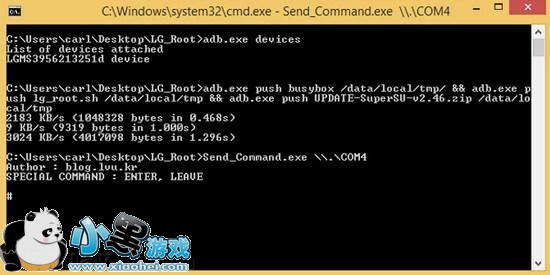 9.在第4步打开的cmd(提示命令符)里输入Send_Command.exe .COM4 (COM4换成第9步里你自己的端口号),效果见图: