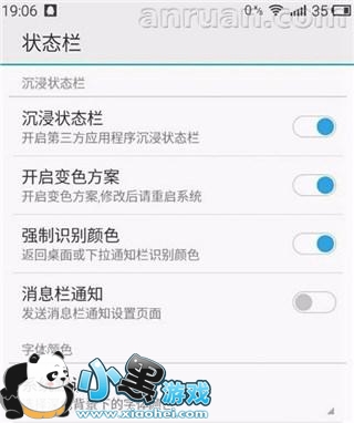 4、打开魅族工具箱打开状态栏,前三个都打开就行了,这样沉浸式状态栏就OK啦。看看效果吧!