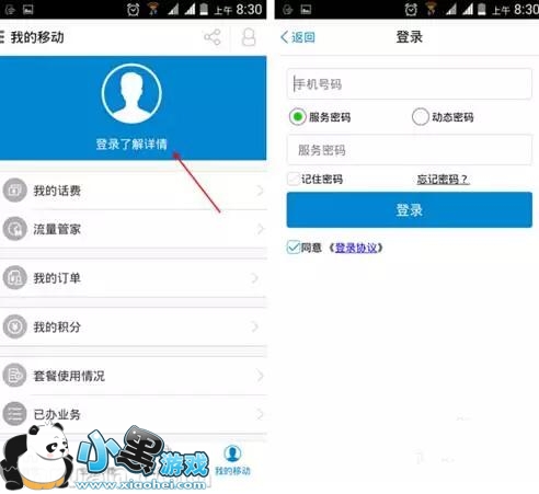 2、安装好了之后,接下来的步骤就和使用电脑网页基本一样了。打开手机营业厅APP,输入:手机号、服务密码,之后进行登录;