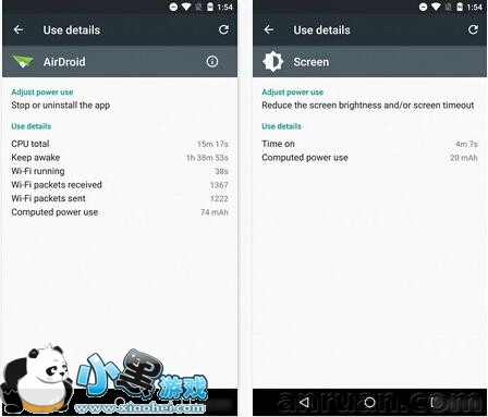 2、当我们查看详情的时候,在airdroid中就可以看到消耗电量的元凶,已经CPU占用时间长短,各项耗电分析。