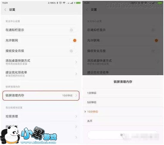 定期清理内存可以让手机运行更流畅,MIUI新增了一个锁屏清理内存功能,在安全中心-设置中可以看到选项。你可以选择在锁屏1分钟/5分钟/10分钟后自动清理内存,既方便又实用!