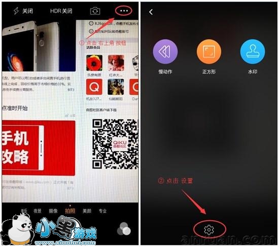 打开手机相机,点击右上角三点的更多按钮,然后点击设置。