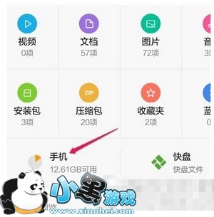 这时候的界面文件管理中点击手机选项进入。