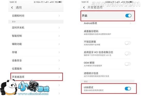在‘设置’-‘通用’中找到‘开发者选项’,点击进入,点击开启,勾选usb调试。