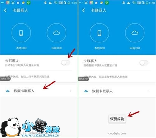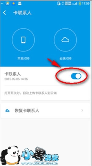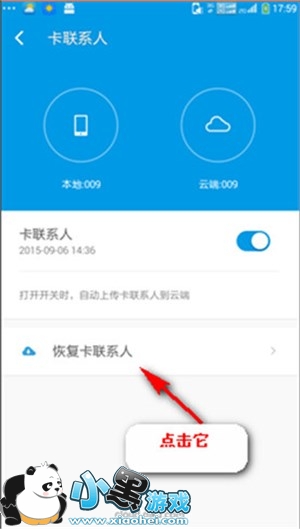 B. (恢复)若亲需要恢复卡联系人的话只要轻轻一点“恢复卡联系人”即可完成,它会将云端已备份的卡联系人恢复到您的手机中哦,如下图所示: