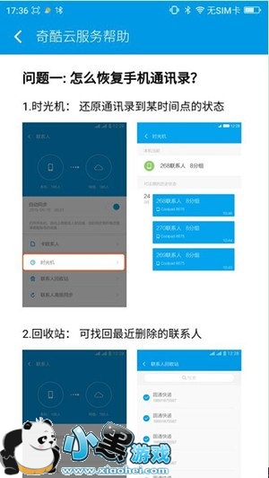 C. (查看)亲,若想查看已备份到云端卡联系人的话可在网页输入http://cloud.qiku.com登录云服务账户进行查看;2.误删了联系人怎么办:亲,我们在手机端增加了“联系人回收站”的功能,点击“联系人回收站”选择误删的联系人进行“立即恢复”即可将联系人恢复到您的通讯录中,如下图所示: