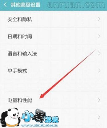 第三步:接下来在其它高级设置界面中,找到并点击进入【电量和性能】选项,如下图所示: