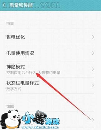 第四步:再接下来在电量和性能菜单页面中,找到并点击进入到【神秘模式】选项,如下图所示: