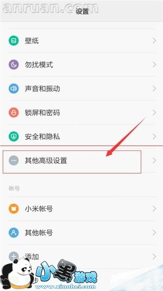 2、然后在我们打开设置项后,在设置界面中我们一直往下拉菜单,找到“其他高级设置”这个功能选项,点击打开它。