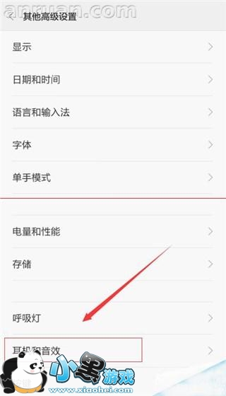 3、在打开进入到其他高级设置选项界面后,我们可以它的界面下看到最下面有一个耳机和音效,点击打开。