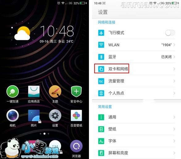 一、首先进入360奇酷手机青春版系统桌面做到并点击【设置】,然后再点击进入【双卡和网络】设置,如下图所示。