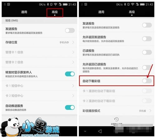 高级设置——自动下载彩信将其关闭