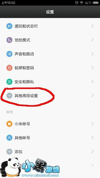 3、在设置里面找到——其他高级设置,进入
